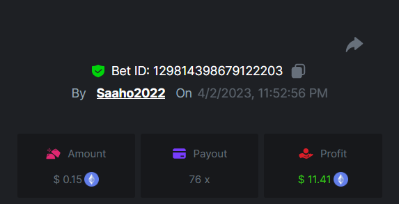 2. 11x - https://bc.game/#/sd/116RI4JA7K6AKZ 13x - 22x - 29x - https://bc.game/#/sd/116R3L3ZK3N4LV 33x - 37x - https://bc.game/#/sd/116RI2JRITDY4Z 43x - https://bc.game/#/sd/116R40T3HHBFV7 56x - https://bc.game/#/sd/116RJFKSRMGX77 76x - https://bc.game/#/sd/116R467XSPE13N 83x- https://bc.game/#/sd/116R2N9NB9E977 110x - 120x - https://bc.game/#/sd/116RH369O64MXF 170x- https://bc.game/#/sd/116RHXR3JPOM4Z 260x - https://bc.game/#/sd/116RJ3F8AS6IHF 420x - https://bc.game/#/sd/116RJLMYSLN6KZ 620x - 1000x