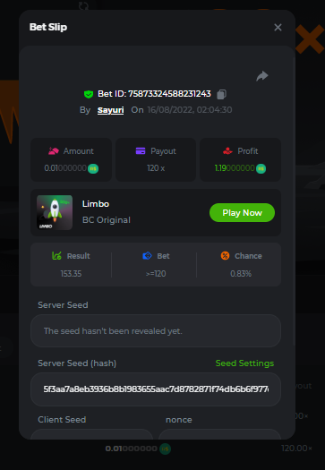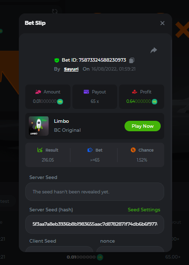 Sayuri_82 replied to BCGame_Maxim's topic in VIP Challenges