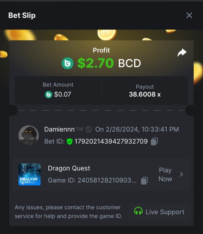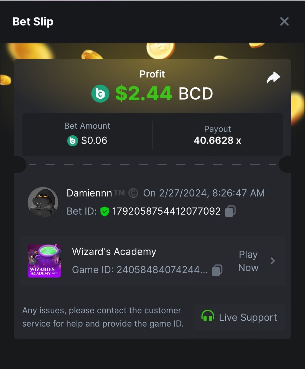 BC Original Slot Multiplier Challenge -Dragons Quest (BC Original) 38.60x - $0.07 bet https://bc.game/#/sd/11THSBRD7TH653 -Wizards Academy (BC Original) 40.66x - $0.06 bet https://bc.game/#/sd/11TISVBB68NZWZ