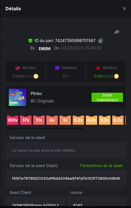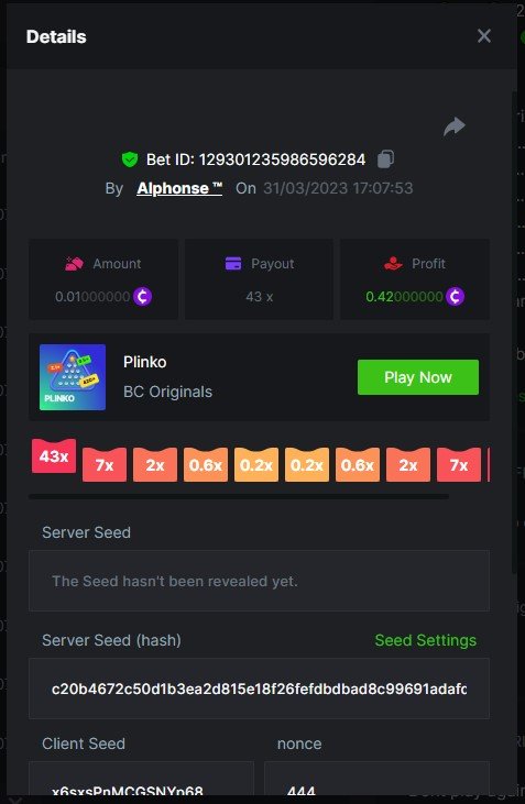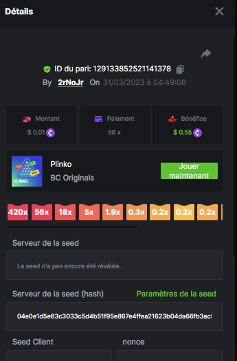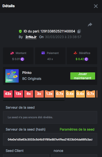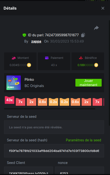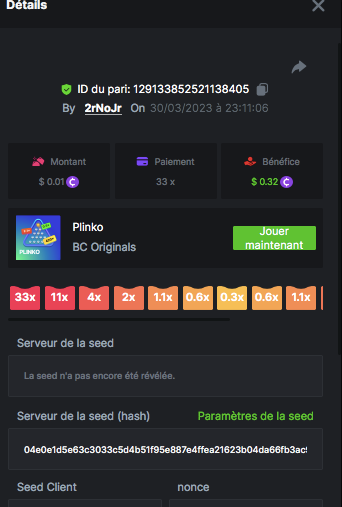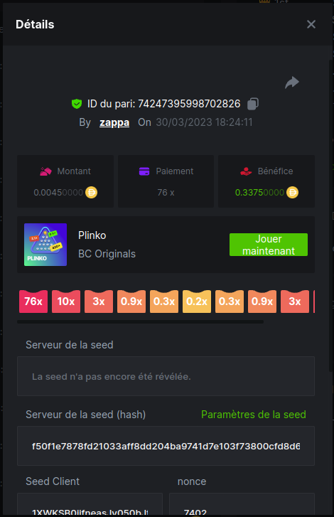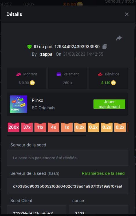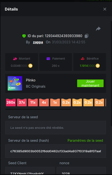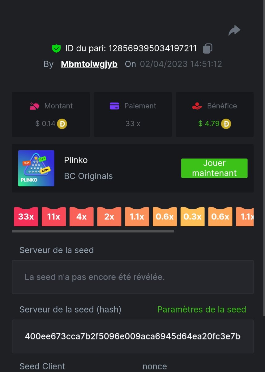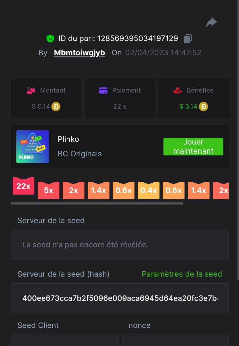 Member AkSyEn03 Posted March 30, 2023 Member Share Posted March 30, 2023 Défi Prestige Plinko de 48$ Début : 30 MARS à 22h45 Fin 4 AVRIL 15h30 Hé, hé, les VIP ! Regardez vers le ciel, il pleut des météores, et ils se rapprochent rapidement ! Frappez le plus grand nombre de paiements uniques sur Plinko pour vous sauver et rejoignez BCRocket pour explorer une nouvelle planète inconnue. La cagnotte est de 48 $ Sois prêt! Continuez à lire plus d'informations ci-dessous pour découvrir les règles de ce défi et comment vous pouvez remporter le premier prix ! Quel est le Défi ? Complétez autant des 17 paiements suivants sur Plinko. Doit être un multiplicateur exact. | 11x | 13x | 22x | 29x | 33x | 37x | 43x | 56x | 76x | 83x | 110x | 120x | 170x | 260x | 420x | 620x | 1000x | Chaque paiement que vous touchez ci-dessus compte pour 1 point (maximum 1 point pour chaque paiement). S'il y a égalité, le joueur avec le montant de pari moyen le plus élevé (en USD) sera le gagnant. S'il y a égalité, le joueur avec le montant de pari moyen le plus élevé (en USD) sera le gagnant. S'il y a égalité dans le montant et le paiement, celui qui a publié ou modifié sa publication en premier sera considéré dans le classement. Comment entrer : Il n'y a pas de niveau VIP minimum Au moins 3 paiements pour vous qualifier Taille de mise minimale 0,0045 USD Pièces éligibles : Toutes les crypto-monnaies sont éligibles (sauf JB) price is 1st.............$15 2nd...........$10 3rd...........$5 4th-13th...$2 Rejoignez et faites un basebet d'au moins 0,15, vous pouvez rejoindre 2 événements en même temps - événement régional : Conditions générales : Veuillez combiner tous vos résultats dans un SEUL message. Modifiez votre publication existante pour des résultats supplémentaires, ne créez pas de nouvelle publication. Chaque inscription éligible doit avoir l'URL du bordereau de pari. Si vous ne l'incluez pas, la participation à l'événement sera disqualifiée. L'image du bulletin de pari n'est pas obligatoire. Les paris doivent être publiés dans les 24 heures suivant le placement du pari afin que les choses restent équitables pour tout le monde. Les paris doivent être faits pendant la fenêtre de temps spécifiée ci-dessus. Ce fil se verrouillera automatiquement lorsque la période de temps sera terminée. Une (1) participation par foyer. Toute personne surprise en train de tenter de gagner plusieurs prix sera disqualifiée de ce défi ainsi que de tous les défis futurs. Le non-respect des instructions entraînera la nullité de votre soumission. En participant à ce défi, vous reconnaissez que BC.Game a la décision finale sur les résultats et le placement. Les paiements seront effectués dans les 72 heures suivant la fin du défi, soyez patient, nous vous promettons que nous n'avons pas oublié. Nous vérifions et revérifions pour nous assurer que les gagnants légitimes reçoivent leur prix. Les prix seront payés en BCD. BONNE CHANCE À TOUS Link to comment Share on other sites More sharing options...