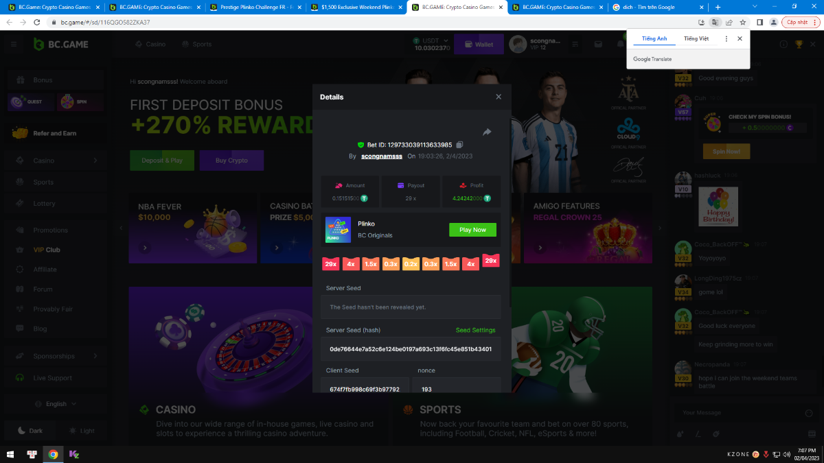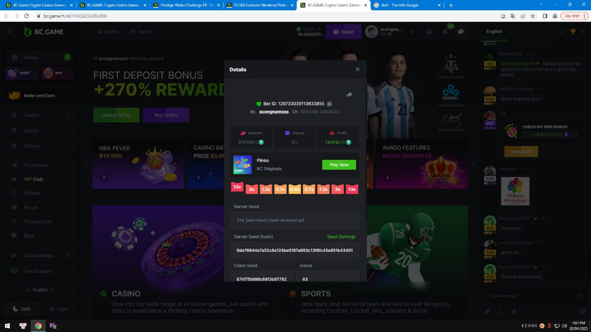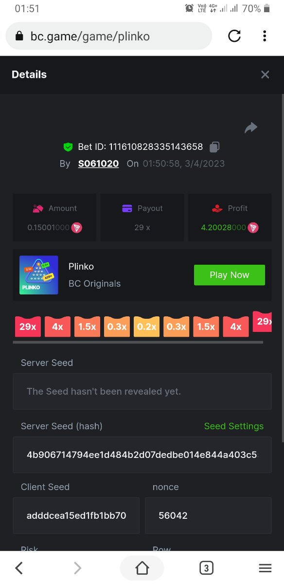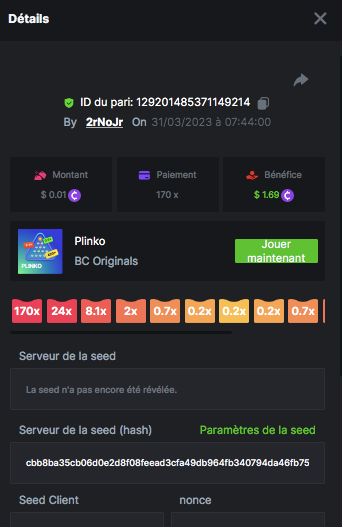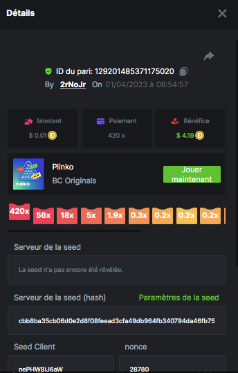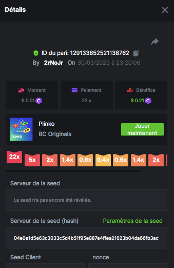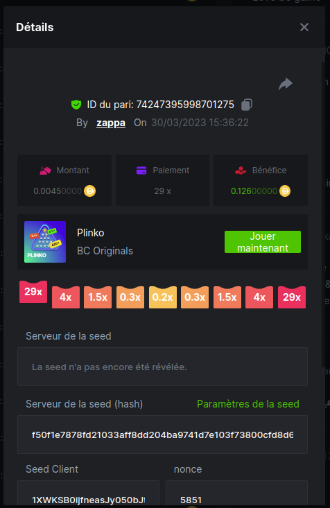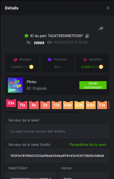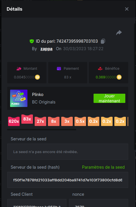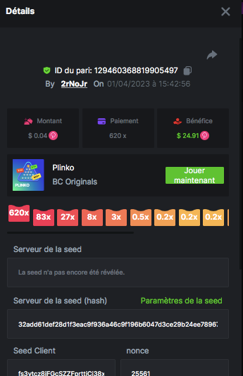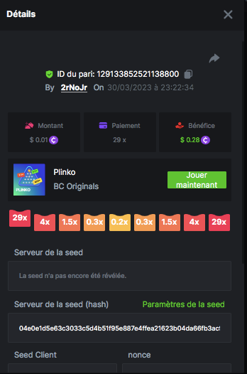 Member AkSyEn03 Posted March 30, 2023 Member Share Posted March 30, 2023 Défi Prestige Plinko de 48$ Début : 30 MARS à 22h45 Fin 4 AVRIL 15h30 Hé, hé, les VIP ! Regardez vers le ciel, il pleut des météores, et ils se rapprochent rapidement ! Frappez le plus grand nombre de paiements uniques sur Plinko pour vous sauver et rejoignez BCRocket pour explorer une nouvelle planète inconnue. La cagnotte est de 48 $ Sois prêt! Continuez à lire plus d'informations ci-dessous pour découvrir les règles de ce défi et comment vous pouvez remporter le premier prix ! Quel est le Défi ? Complétez autant des 17 paiements suivants sur Plinko. Doit être un multiplicateur exact. | 11x | 13x | 22x | 29x | 33x | 37x | 43x | 56x | 76x | 83x | 110x | 120x | 170x | 260x | 420x | 620x | 1000x | Chaque paiement que vous touchez ci-dessus compte pour 1 point (maximum 1 point pour chaque paiement). S'il y a égalité, le joueur avec le montant de pari moyen le plus élevé (en USD) sera le gagnant. S'il y a égalité, le joueur avec le montant de pari moyen le plus élevé (en USD) sera le gagnant. S'il y a égalité dans le montant et le paiement, celui qui a publié ou modifié sa publication en premier sera considéré dans le classement. Comment entrer : Il n'y a pas de niveau VIP minimum Au moins 3 paiements pour vous qualifier Taille de mise minimale 0,0045 USD Pièces éligibles : Toutes les crypto-monnaies sont éligibles (sauf JB) price is 1st.............$15 2nd...........$10 3rd...........$5 4th-13th...$2 Rejoignez et faites un basebet d'au moins 0,15, vous pouvez rejoindre 2 événements en même temps - événement régional : Conditions générales : Veuillez combiner tous vos résultats dans un SEUL message. Modifiez votre publication existante pour des résultats supplémentaires, ne créez pas de nouvelle publication. Chaque inscription éligible doit avoir l'URL du bordereau de pari. Si vous ne l'incluez pas, la participation à l'événement sera disqualifiée. L'image du bulletin de pari n'est pas obligatoire. Les paris doivent être publiés dans les 24 heures suivant le placement du pari afin que les choses restent équitables pour tout le monde. Les paris doivent être faits pendant la fenêtre de temps spécifiée ci-dessus. Ce fil se verrouillera automatiquement lorsque la période de temps sera terminée. Une (1) participation par foyer. Toute personne surprise en train de tenter de gagner plusieurs prix sera disqualifiée de ce défi ainsi que de tous les défis futurs. Le non-respect des instructions entraînera la nullité de votre soumission. En participant à ce défi, vous reconnaissez que BC.Game a la décision finale sur les résultats et le placement. Les paiements seront effectués dans les 72 heures suivant la fin du défi, soyez patient, nous vous promettons que nous n'avons pas oublié. Nous vérifions et revérifions pour nous assurer que les gagnants légitimes reçoivent leur prix. Les prix seront payés en BCD. BONNE CHANCE À TOUS Link to comment Share on other sites More sharing options...