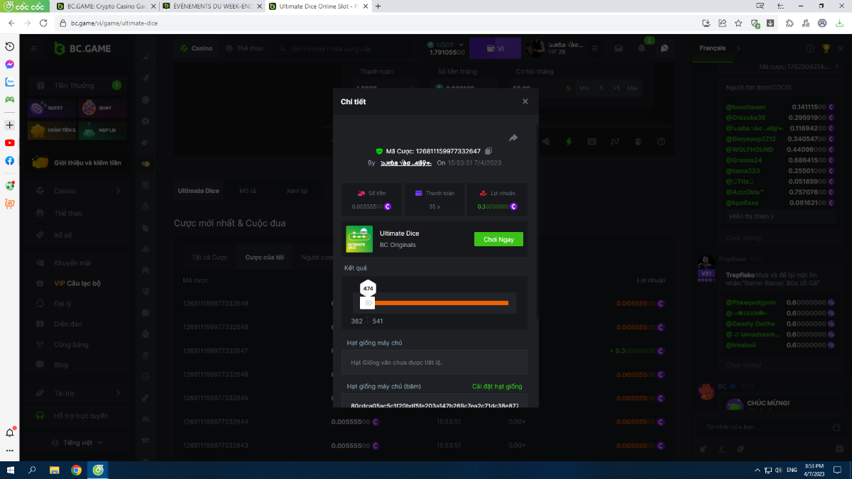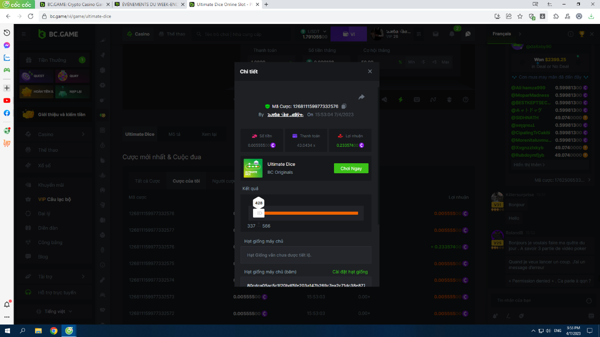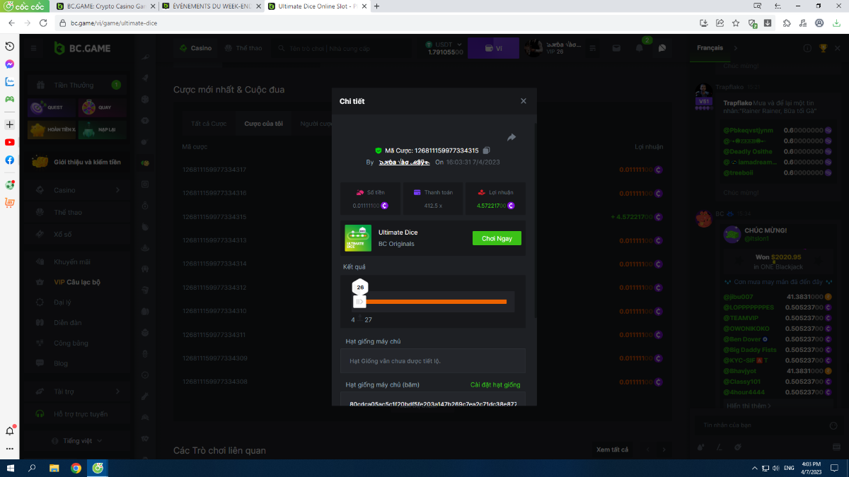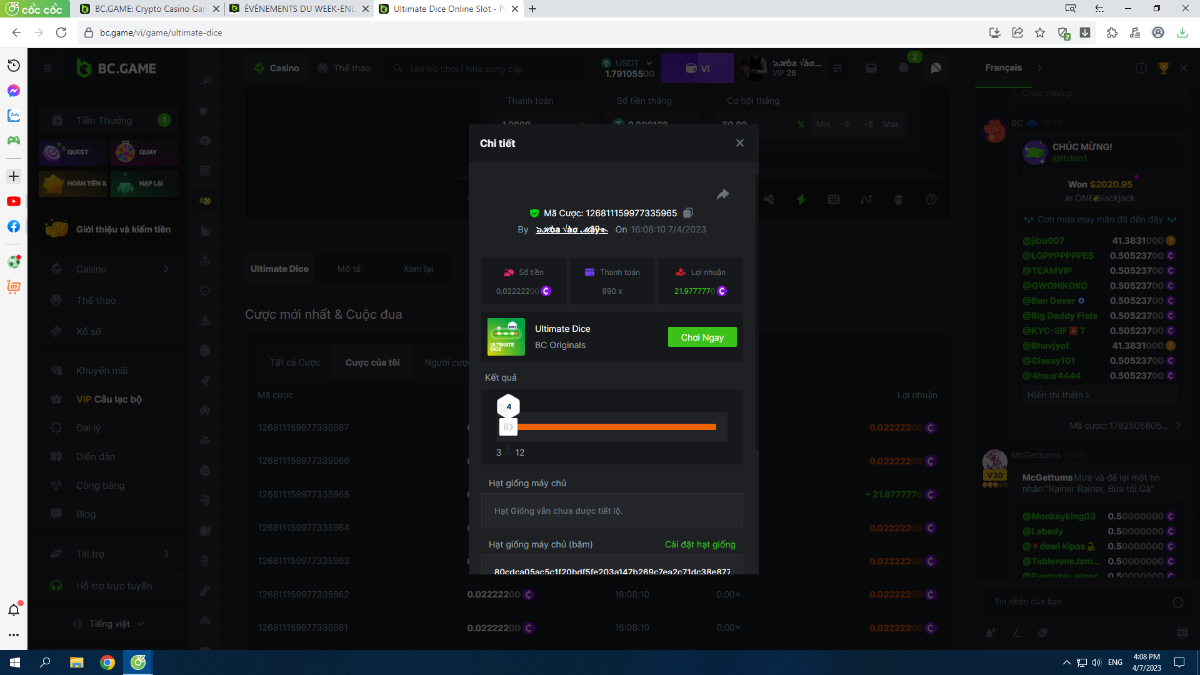Complétez autant des 17 paiements suivants sur BC original👍 ULTIMATE DICE (https://bc.game/fr/game/ultimate-dice)👍. Doit être un multiplicateur exact ou très proche.